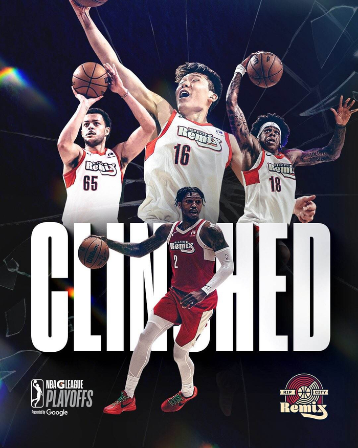 有趣的是,在混音锁定季后赛时,G联盟官方社媒账号发布贺图,杨瀚森稳稳位居C位,又高又大又显眼;混音的球队官方社媒账号发布贺图时图片上却没有杨瀚森,比杨瀚森出战场次更少(只出战10场)的凯勒布-乐福却在图片上。